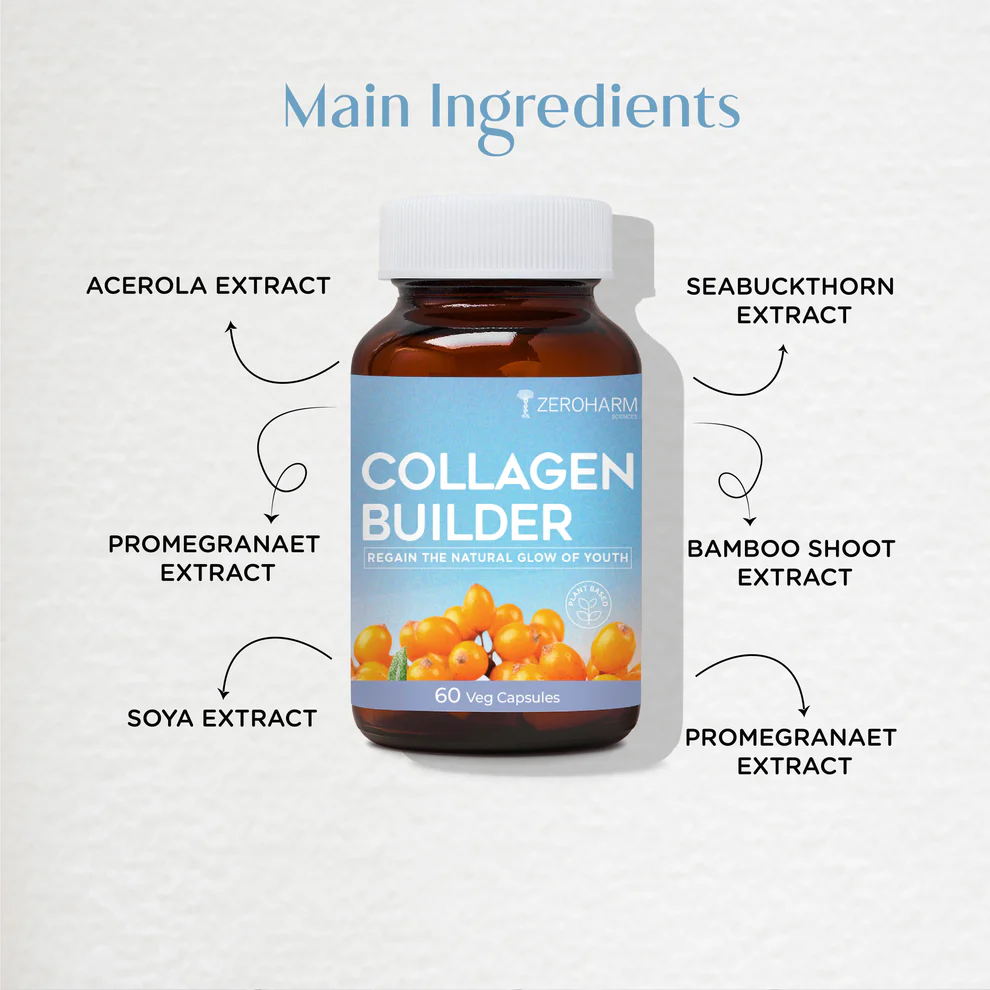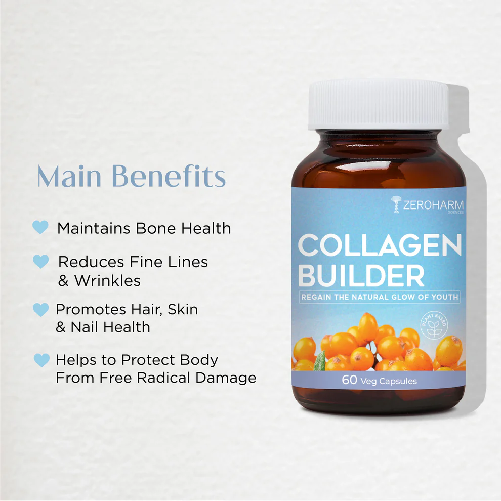 Experience the transformative power of our Collagen Builder for enhanced skin whitening, anti-aging, and improved hair and nail health & to boost natural collagen levels. Formulated using cutting-edge nanotechnology, it uses a blend of sea buckthorn, acerola cherry, and soya extracts. Trusted by over 1000 customers