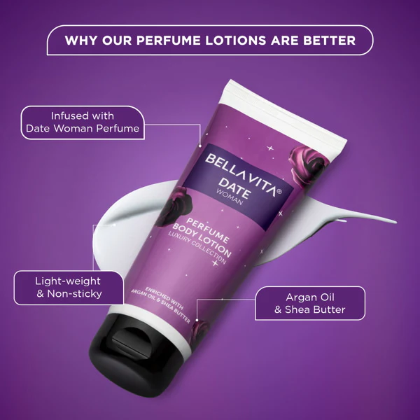 Step 2 : Take an adequate amount of the DATE Woman Perfume Lotion and apply it all over your body to nourish your skin.