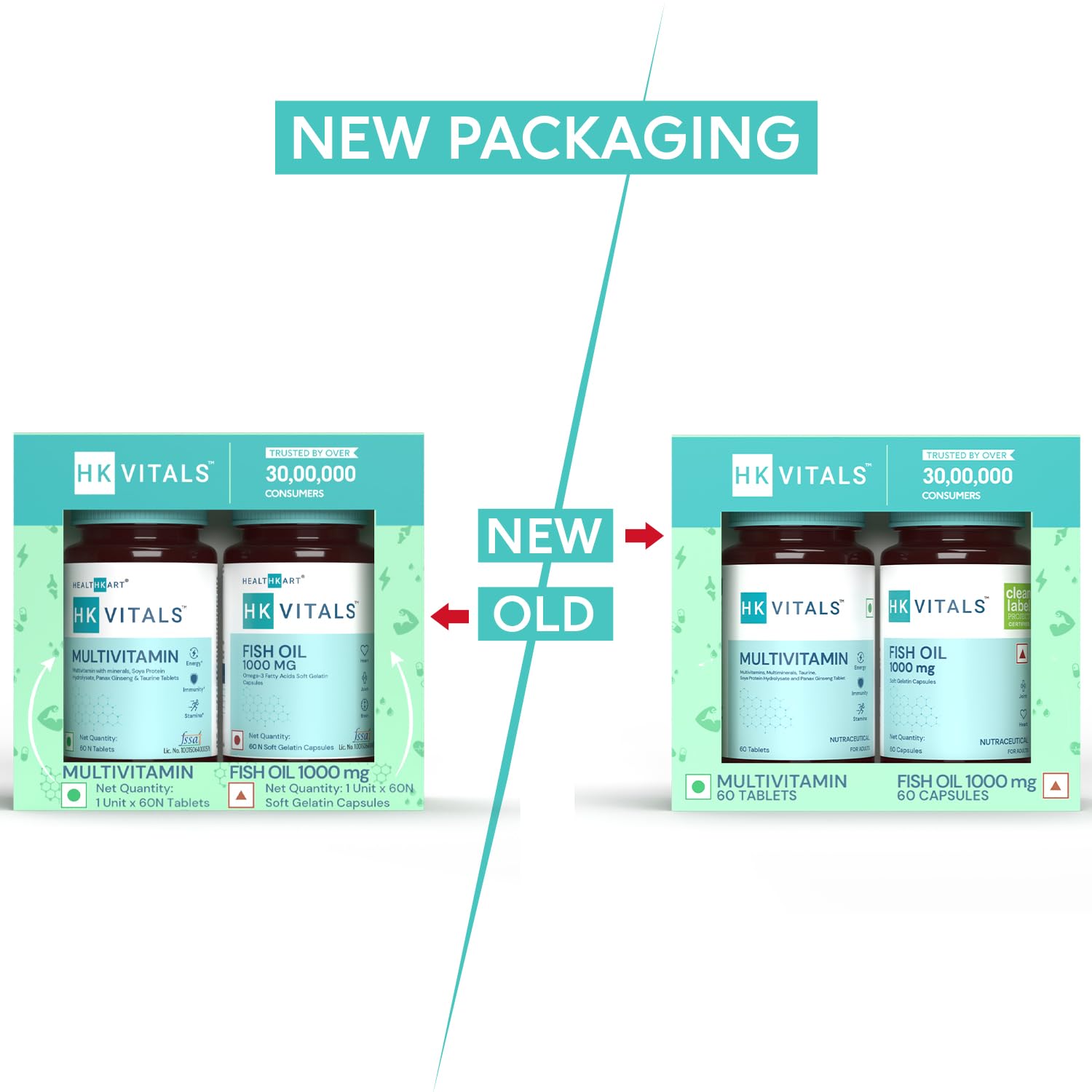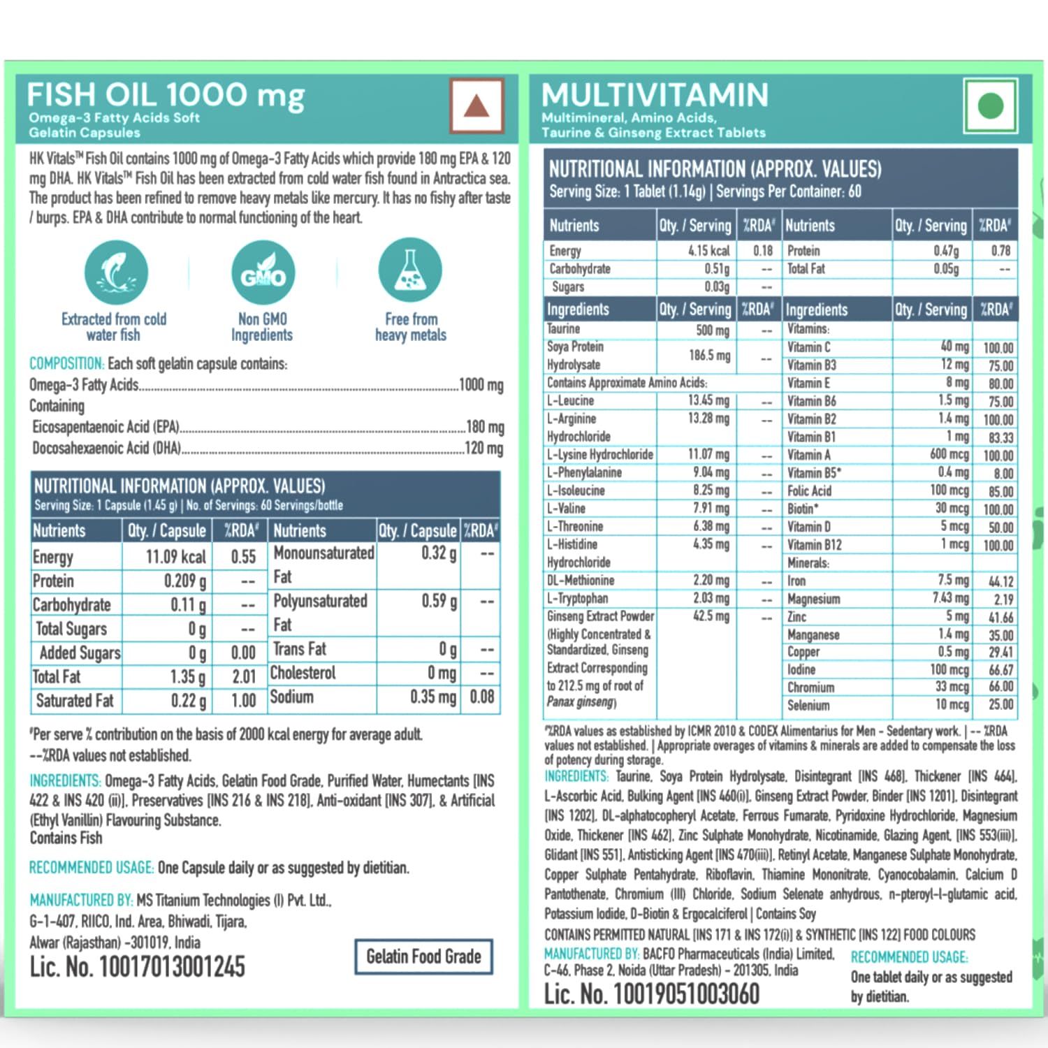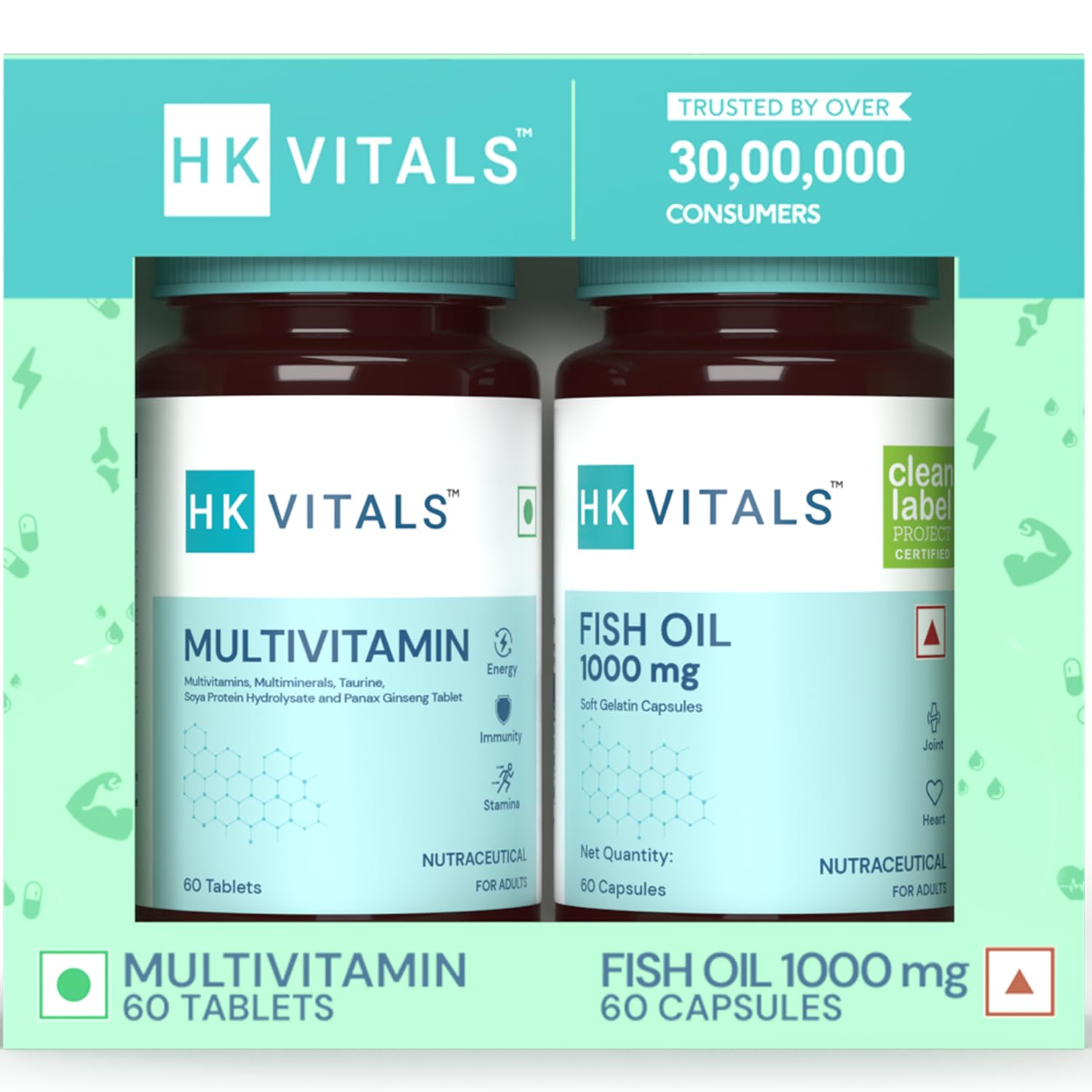 Details: This HealthKart HK Vitals combo includes HK Vitals Fish Oil with Omega 3 and HK Vitals Multivitamin.