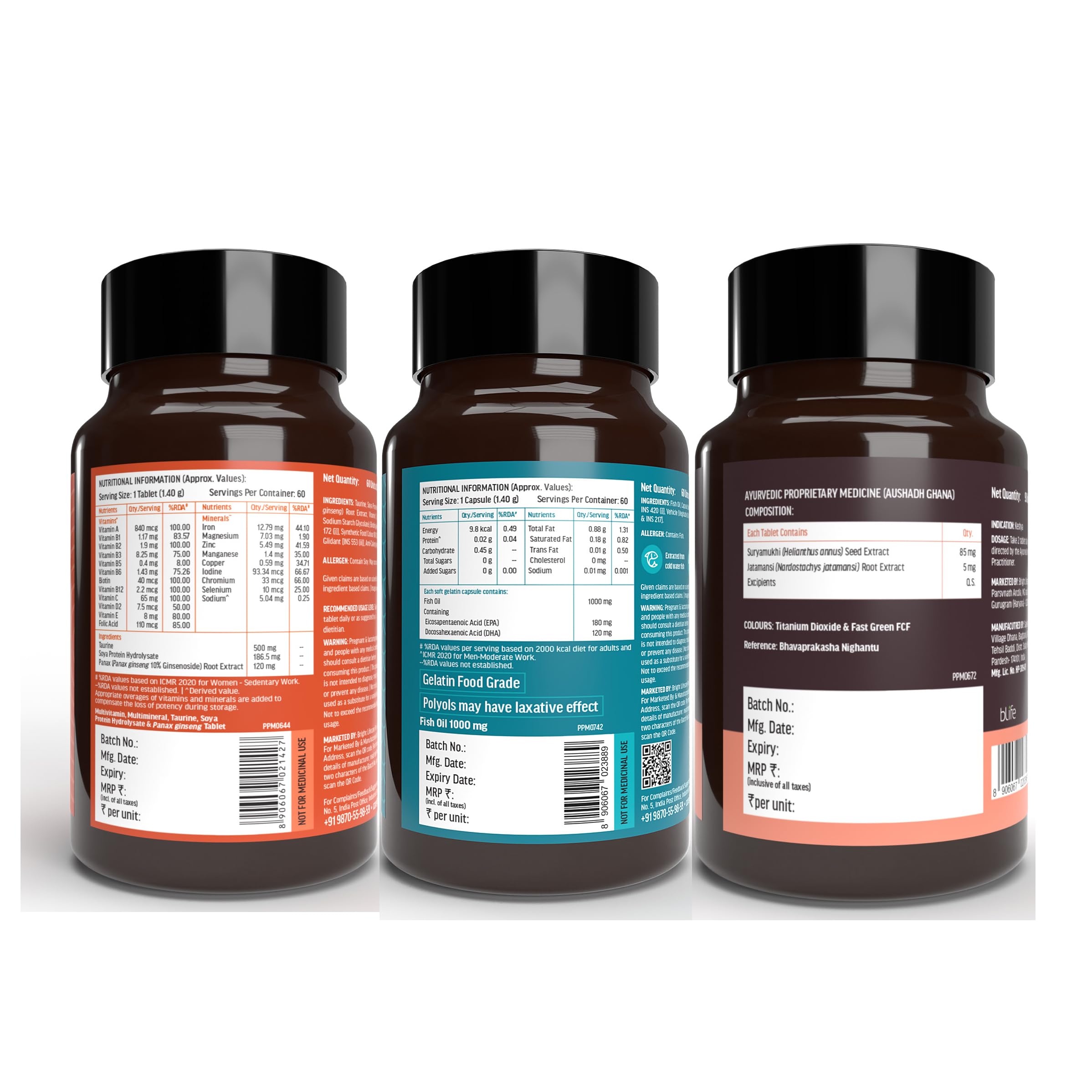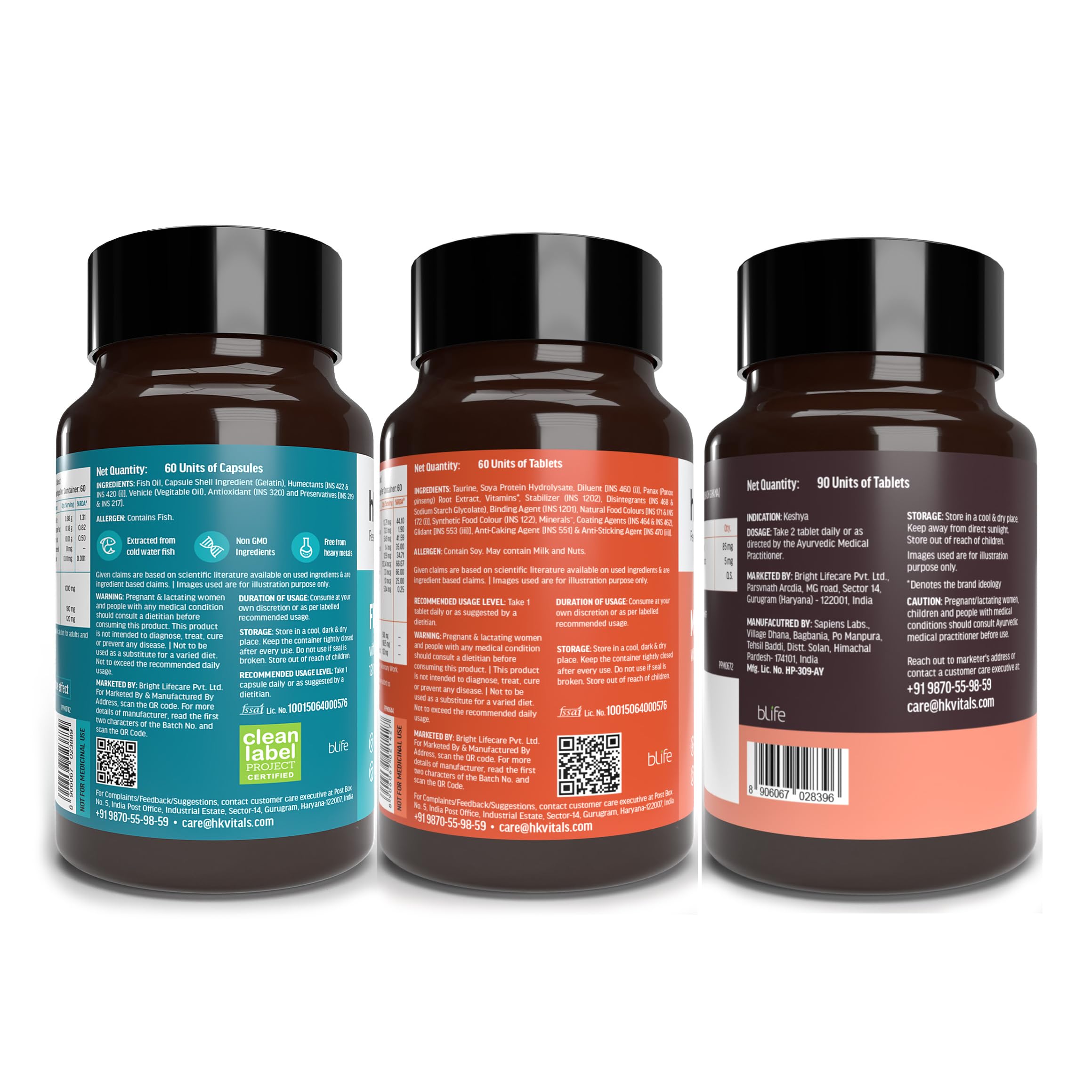 - Bioavailable Fish Oil (Omega 3) 1000 mg enriched with 180 mg EPA & 120 mg DHA extracted from cold water fishes (Sardines)