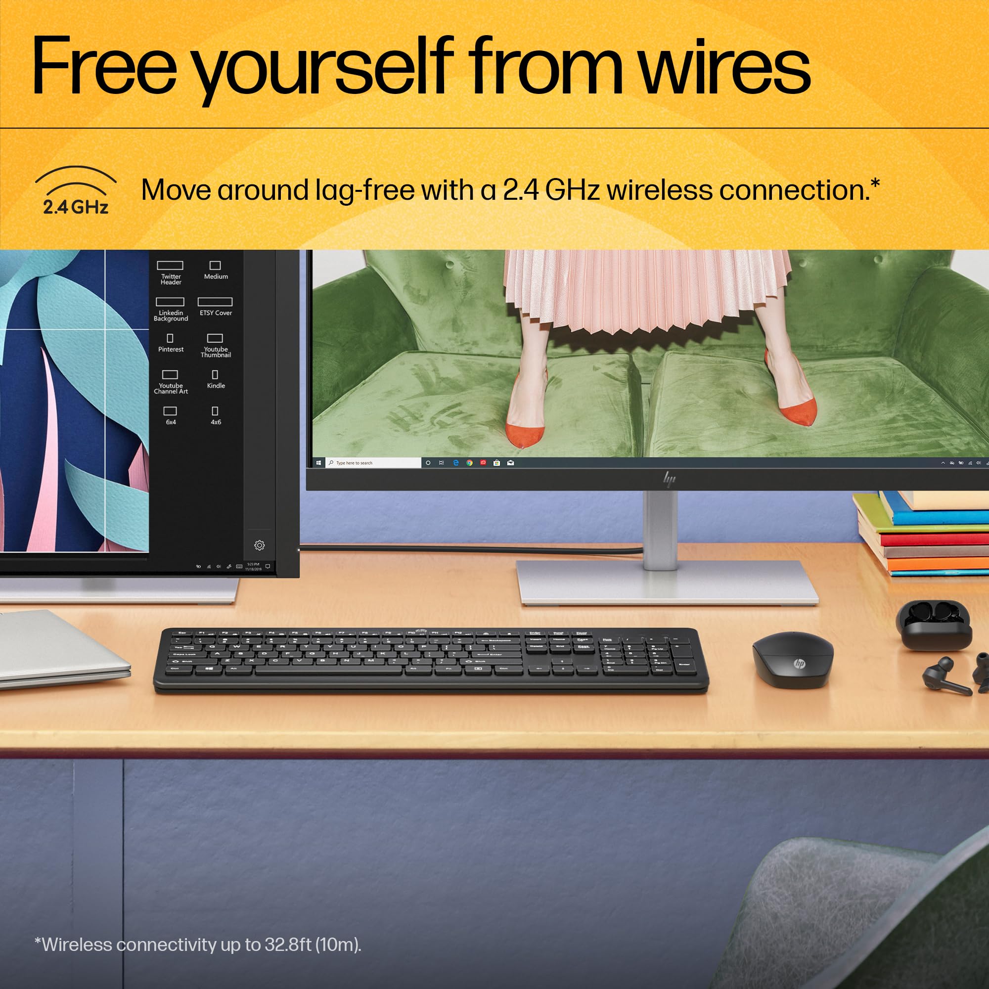 - Wireless connectivity up to 32.8ft (10m).