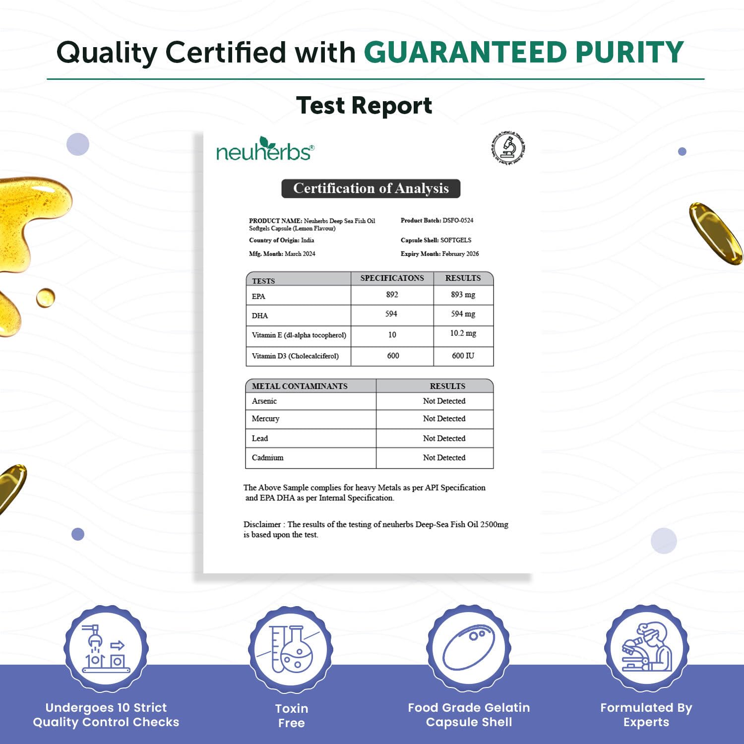 - India’s First Flavoured Omega 3- neuherbs Fish Oil Omega 3 capsules comes with lemon flavour that helps you avoid fishy burps or aftertaste and fuel up your fitness journey.