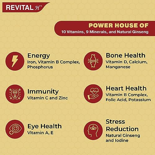 - Revital H multivitamin capsules for daily health is a balanced combination of Natural Ginseng, 10 Vitamins and 9 minerals which can help fill in nutritional gaps and support general well-being for a healthy, active lifestyle