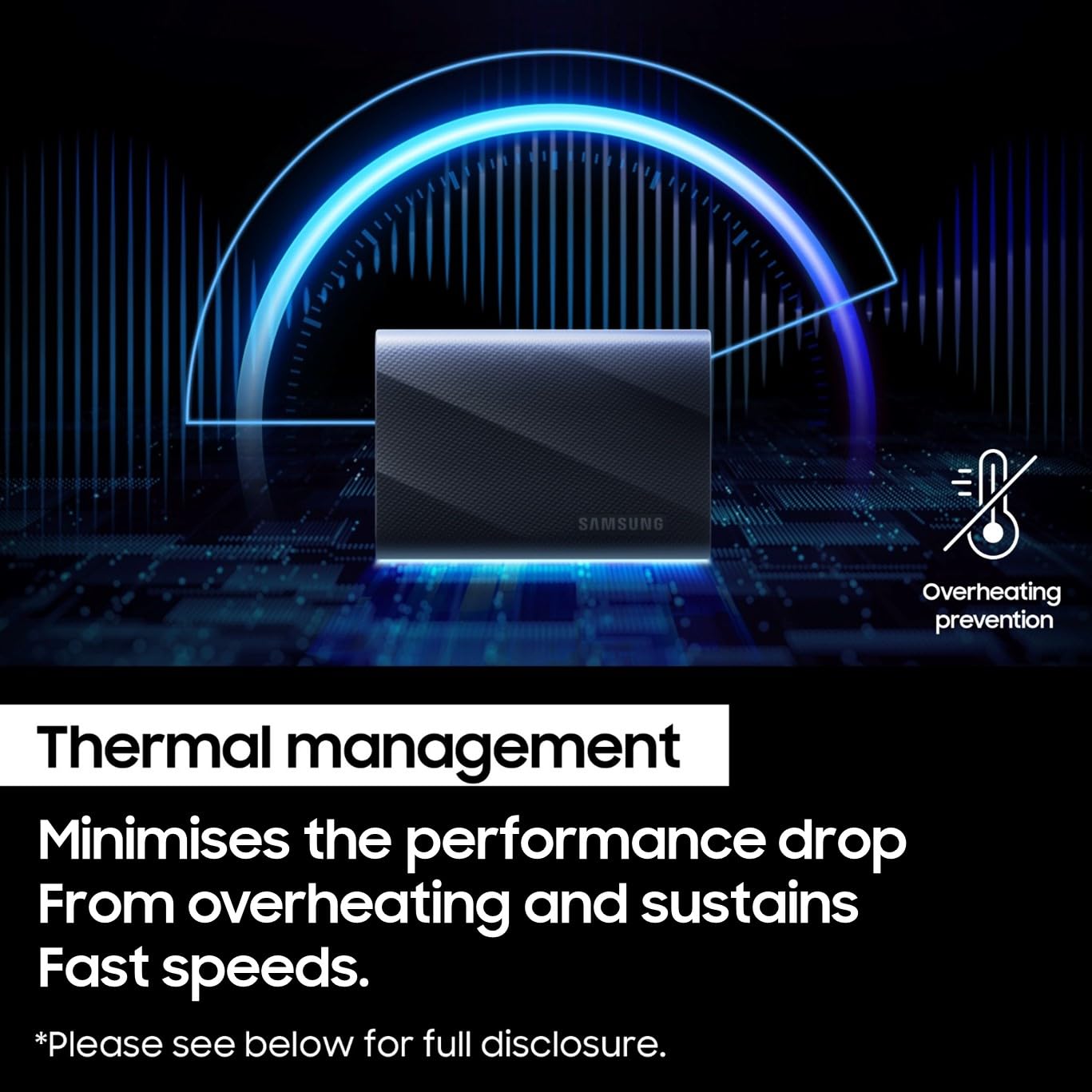 - DYNAMIC THERMAL GUARD: When you’re elbow-deep in a passion project, the T9 Portable SSD stays cool; Its advanced thermal solution withstands and controls heat to keep the SSD at ideal temperatures—even in heavy use**