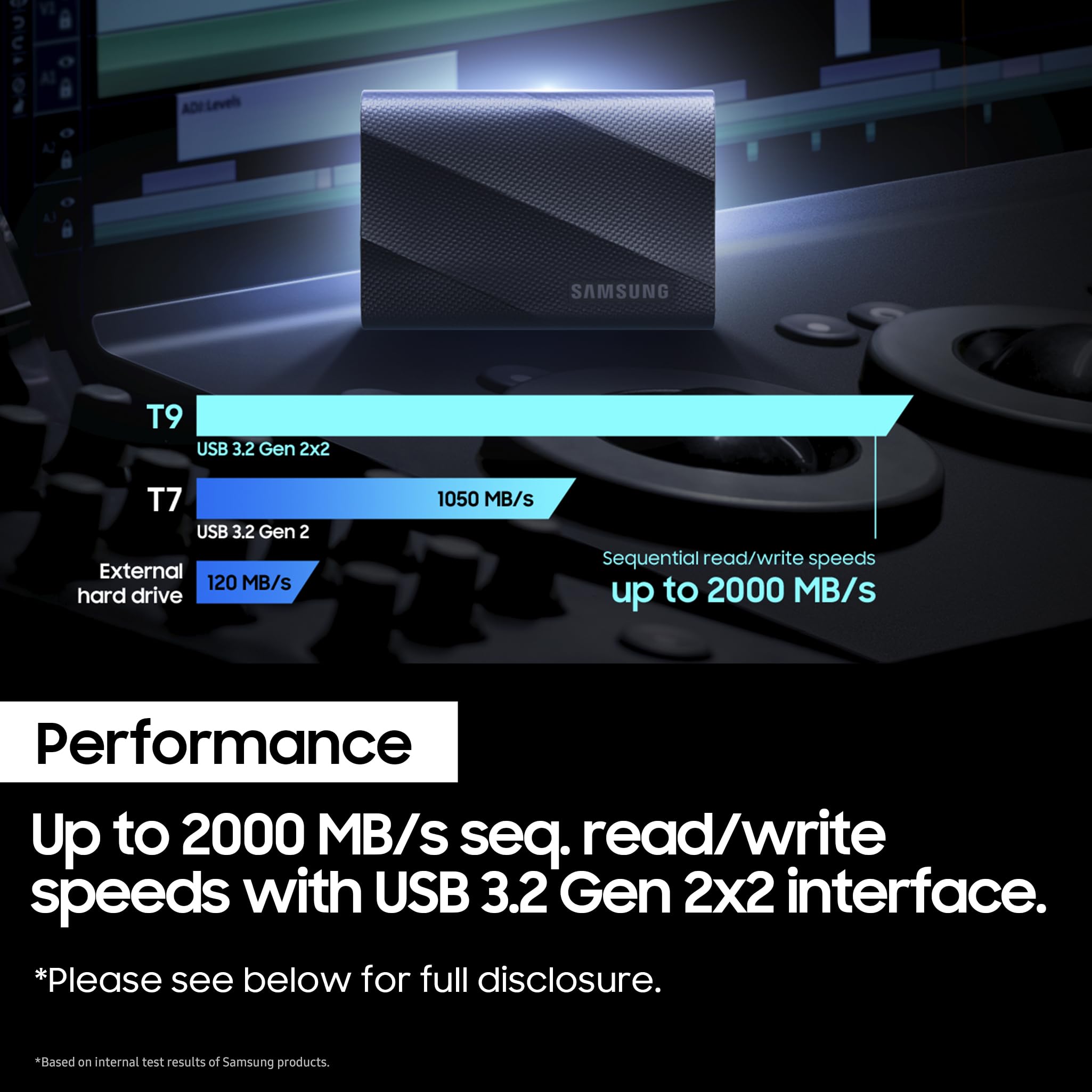 - NONSTOP SPEED: Race through projects with our fastest SSD for creators; Load, edit and transfer with sustained read and write speeds of up to 2,000MB/s*; The T9 Portable SSD performs at high speeds even during longer processes