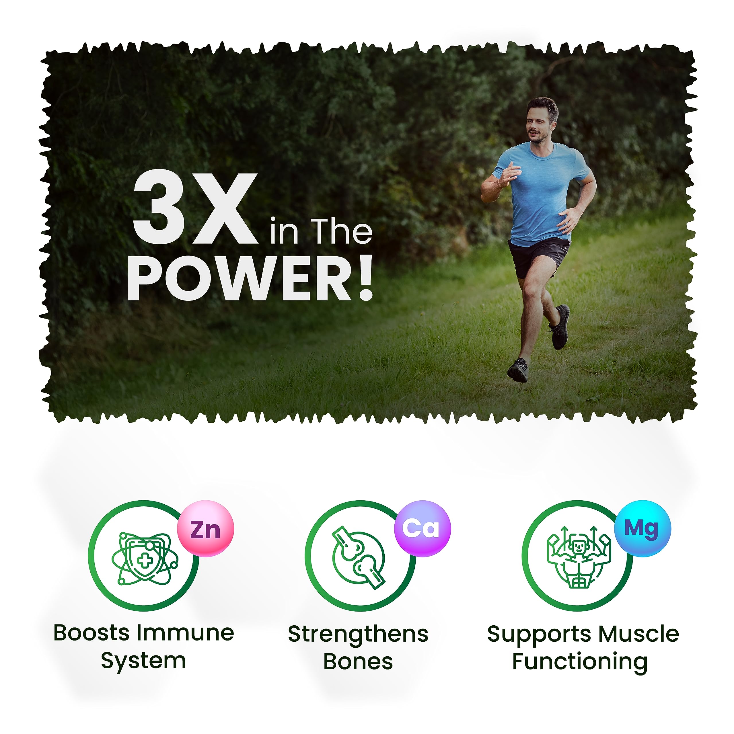 - ✔ Calcium + Magnesium + Zinc : Multi Benefits Of Calmagzinc Supplement : Calcium, Magnesium, Zinc, Vitamin D & B12 Together Forms A Perfect Combination Which Are Essential For Bone, Joint & Muscle Health And Immunity Support